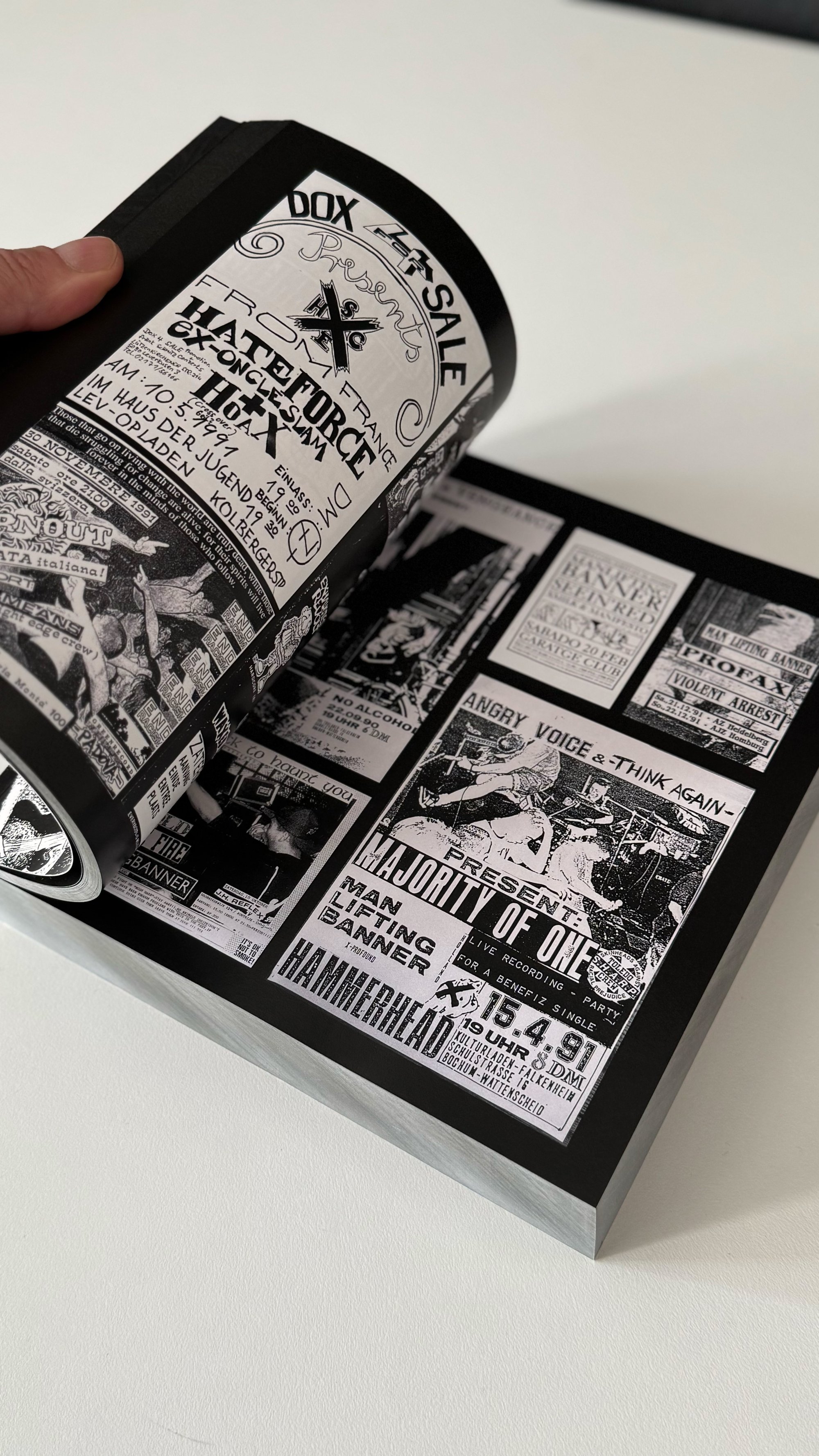 “Echoes of the Stage” contains a collection of 3,000 hardcore show flyers, mainly from Germany, Belgium and the Netherlands, but also some from the rest of Europe. The flyers range from the early 1980s to early 2025, and the 774-page compilation includes pieces from my personal collection as well as shows I've organized since the early 2000s. It also highlights great contributions from friends and other organizers.